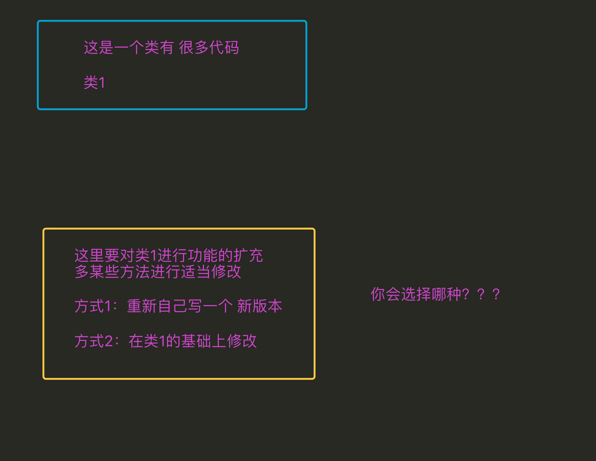 - 继承能够有效的进行代码的管理,当某个类有问题只要修改这个类就行,而其继承这个类的子类往往不需要就修改