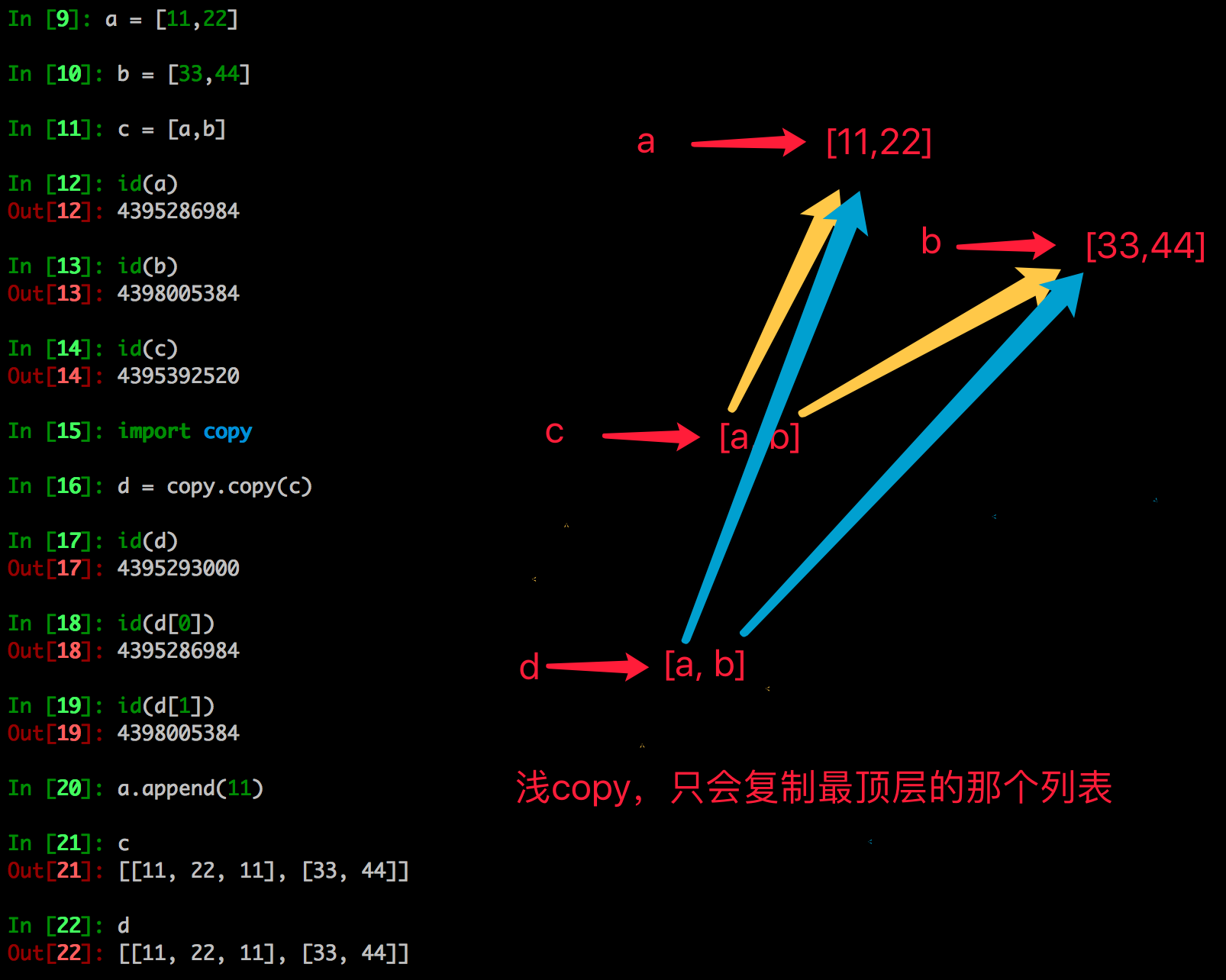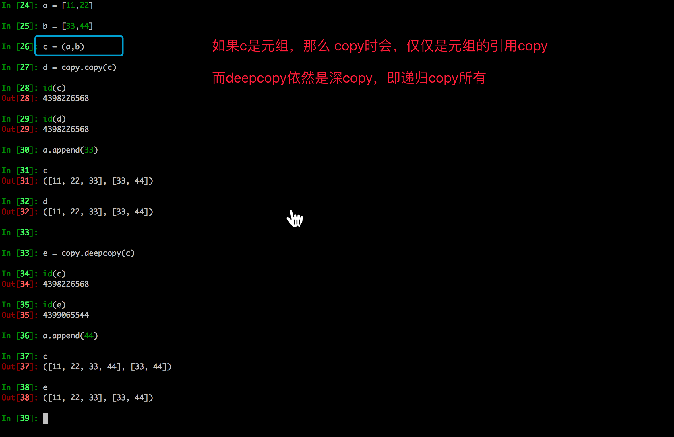 - copy.copy对于不可变类型,不会拷贝,仅仅是指向