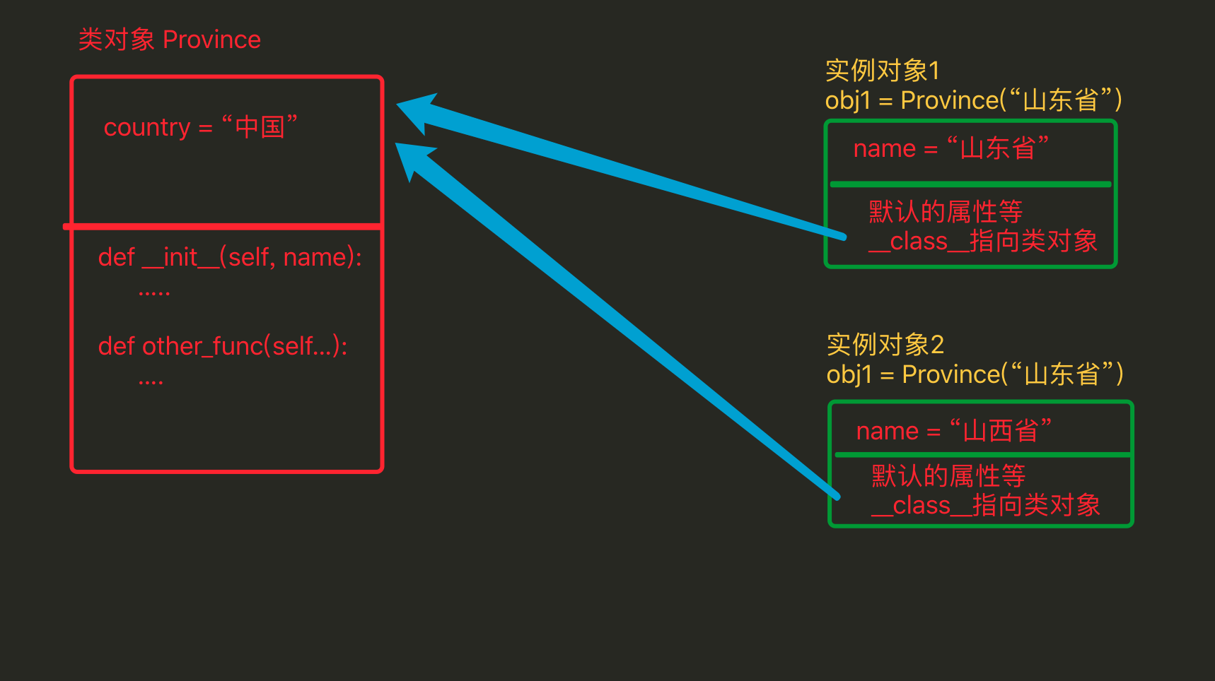 - 通过类创建实例对象时,如果每个对象需要具有相同名字的属性,那么就使用类属性,用一份既可