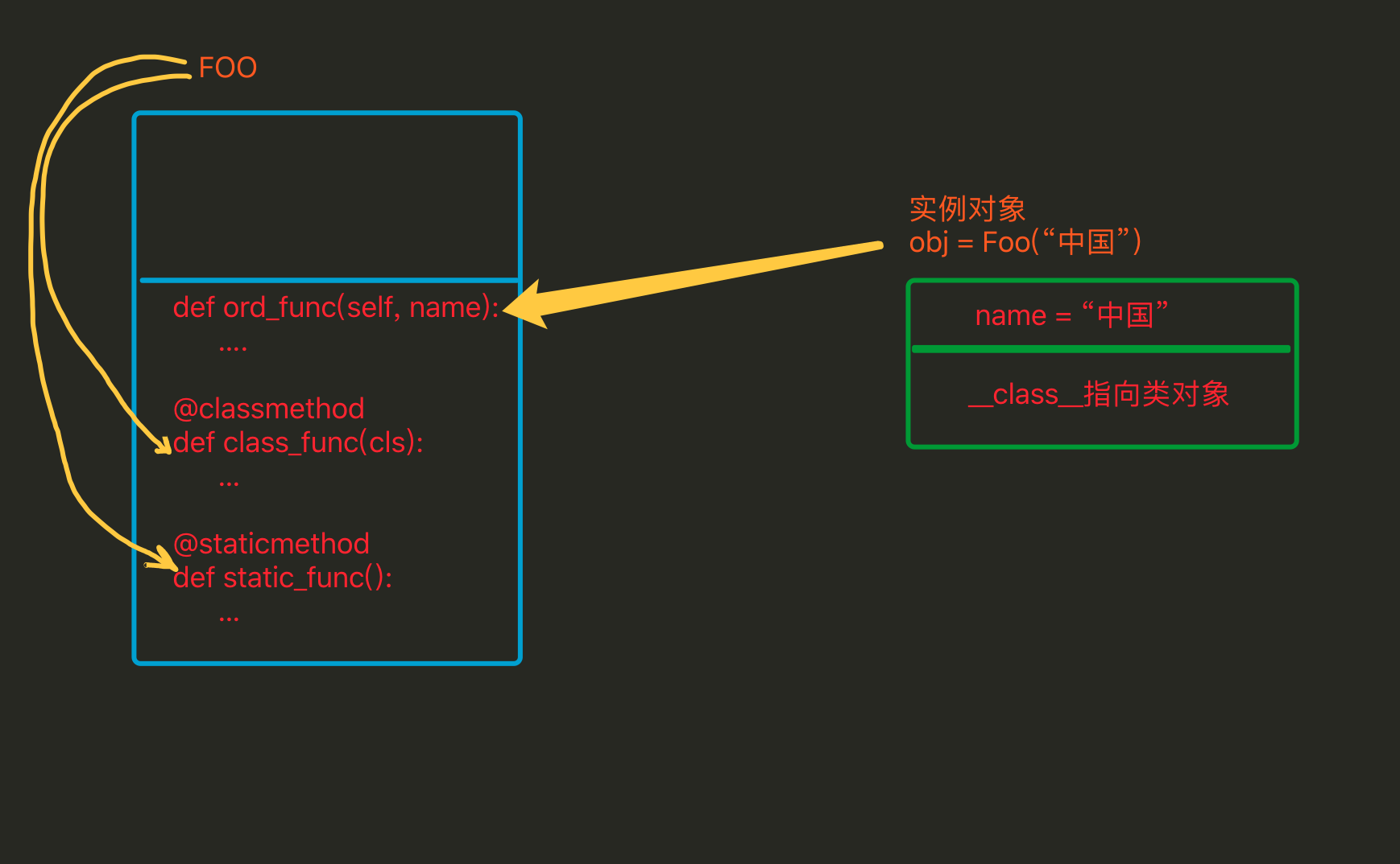 - 实例方法:由对象调用;至少一个self参数;执行实例方法时,自动将调用该方法的对象赋值给self;