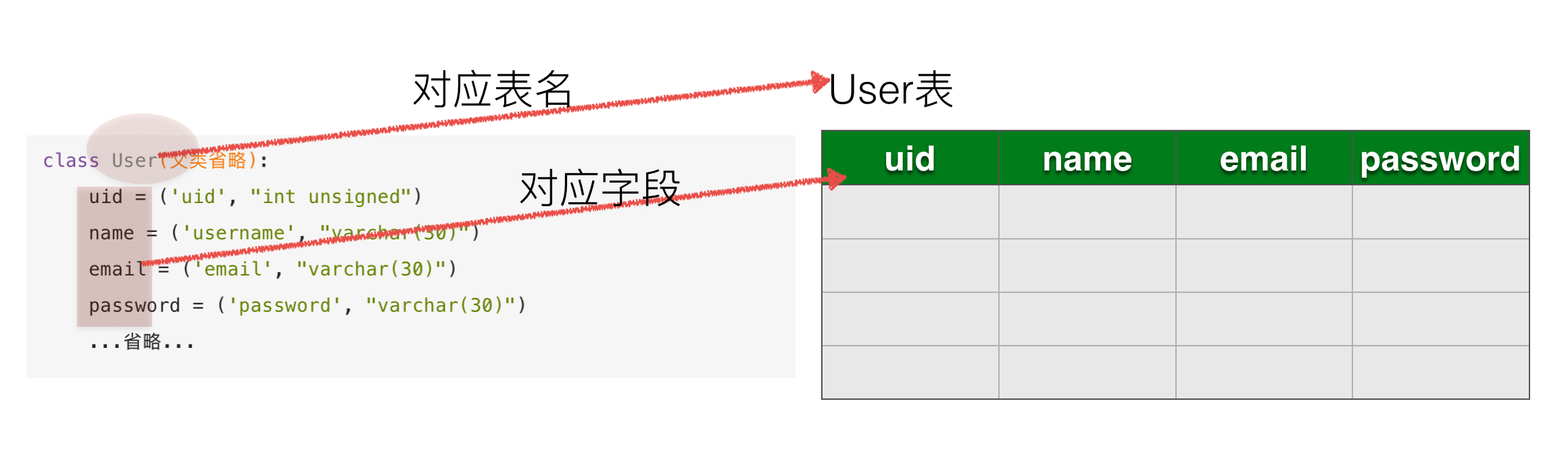 一个句话理解就是:创建一个实例对象,用创建它的类名当做数据表名,用创建它的类属性对应数据表的字段,当对这个实例对象操作时,能够对应MySQL语句